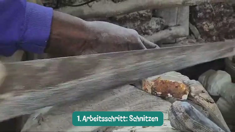 In Kissi, in einem Dorf in Kenia, leben über 30 Familien von der Specksteinkunst. Hier siehst du, wie die Handschmeichler von Hand geschnitzt, bemalt und veredelt werden.